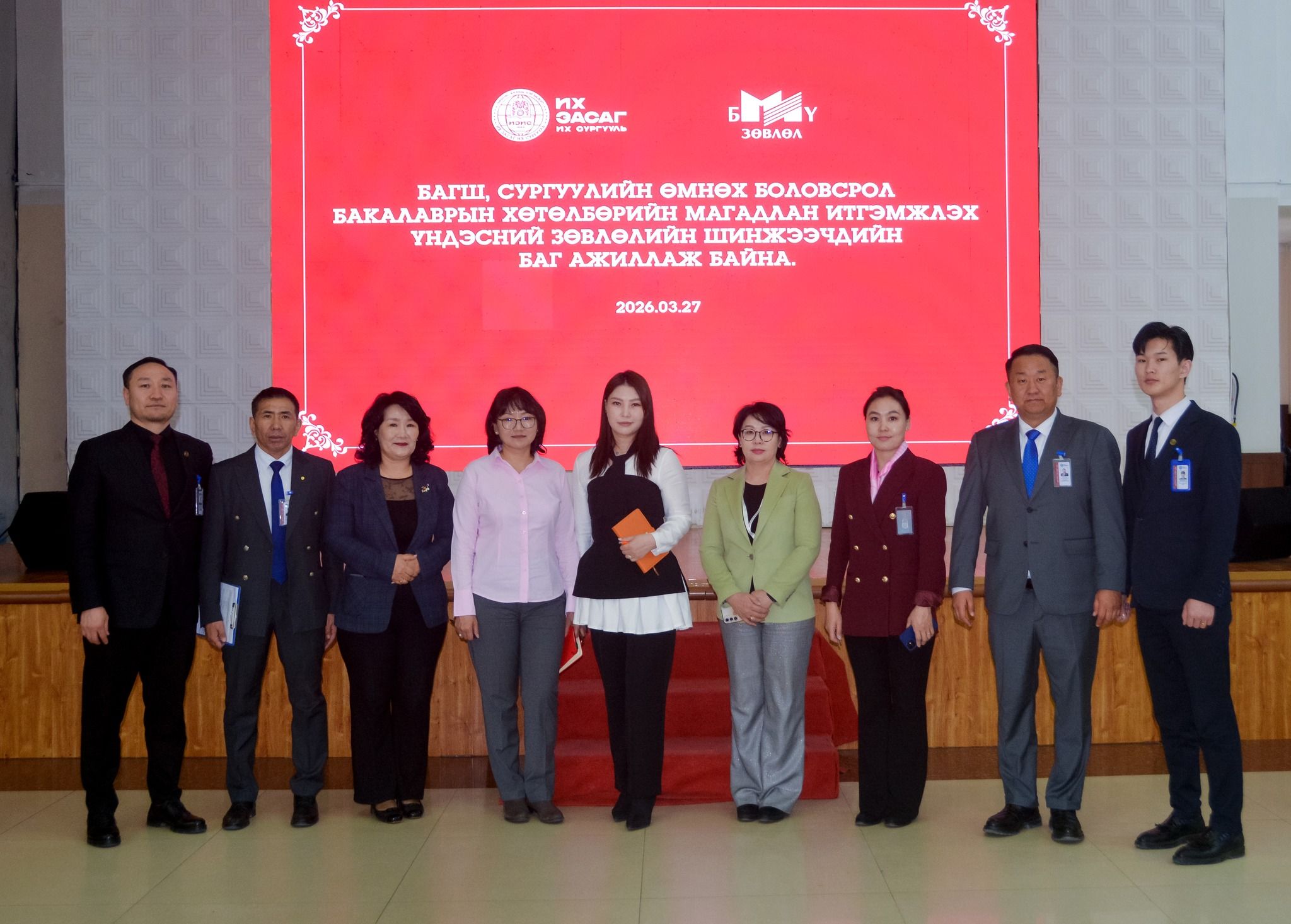 Их Засаг их сургуулийн Хүмүүнлэгийн ухааны сургуулийн “Багш, сургуулийн өмнөх боловсрол” хөтөлбөрт Боловсролын магадлан итгэмжлэх үндэсний зөвлөл (БМИҮЗ)-ийн мэргэжлийн шинжээчдийн баг ажиллаж байна.