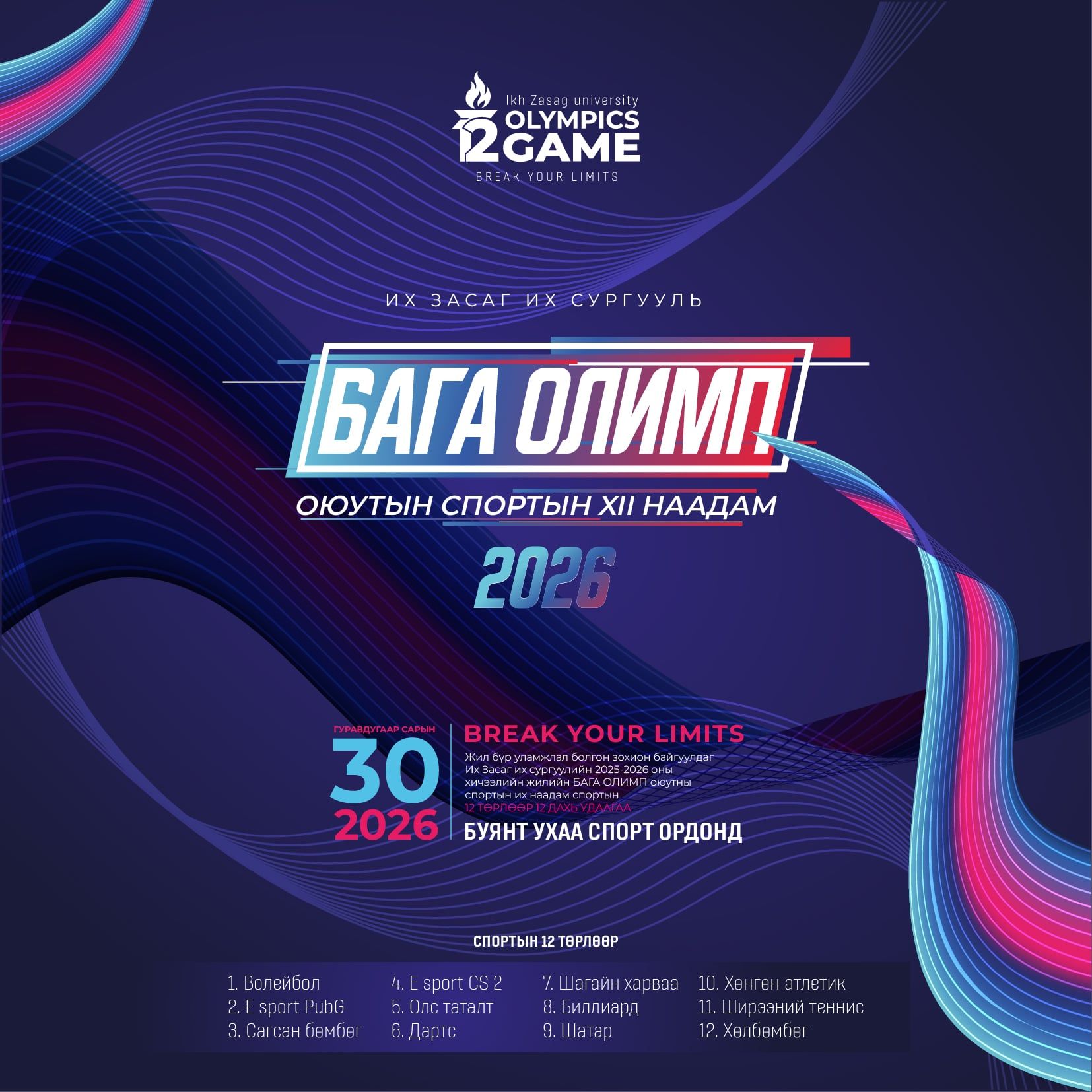 2026 оны 03 дугаар сарын 30-ны өдөр зохион байгуулагдах “Бага Олимп – 2026” Оюутны спортын наадам тун удахгүй эхлэх гэж байна.