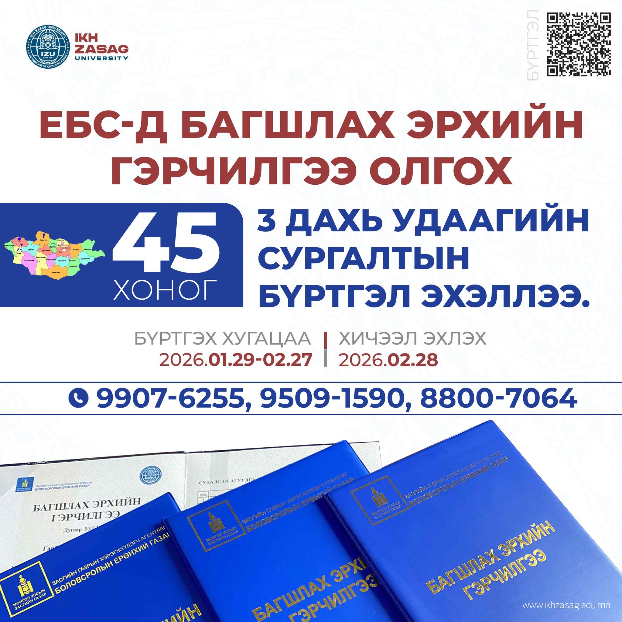 - Хичээл эхлэх хугацаа: 2026.02.28