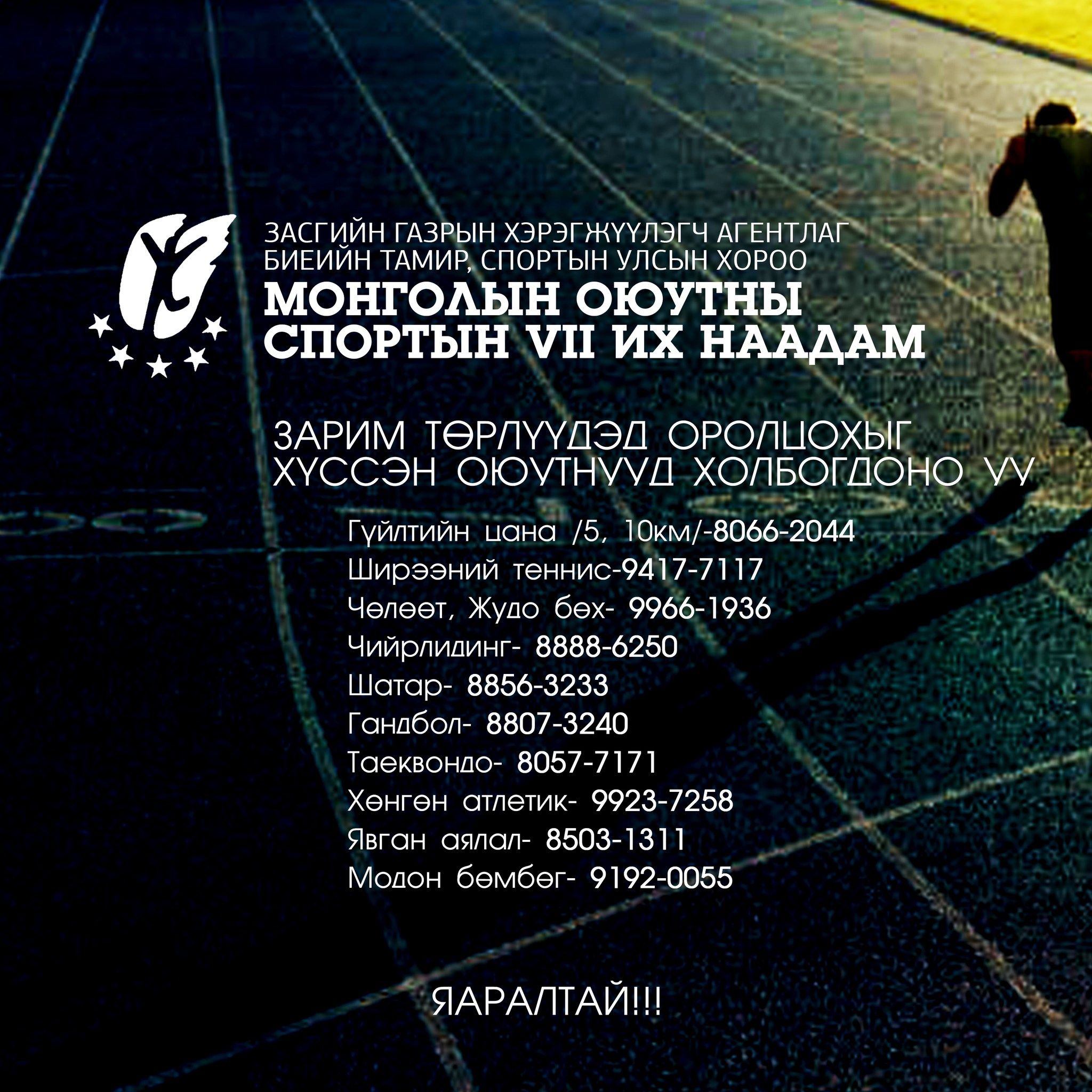 Тэмцээний зарим спортын төрлүүдэд тамирчин шалгаруулж авах тул спортын авьяастай, идэвхтэй оюутнууд та бүхэн өргөнөөр оролцоно уу.