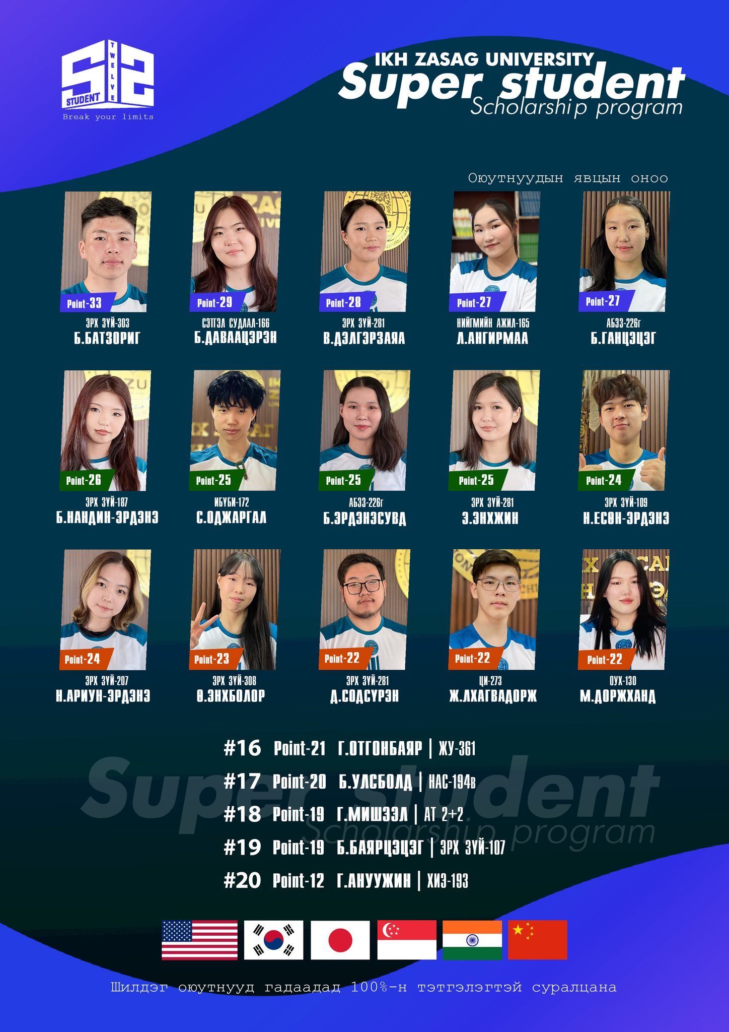 Монголын хамгийн өндөр шагналын сантай SUPER STUDENT хөтөлбөр 12 дахь удаагаа “Өөрийнхөө хязгаарыг дав” уриатай зохион байгуулагдаж байна.
